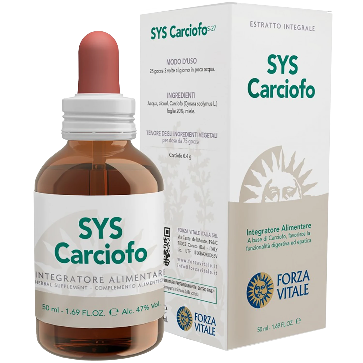Carciofo Sys è un integratore alimentare a base di Carciofo, favorisce la funzionalità digestiva ed epatica.