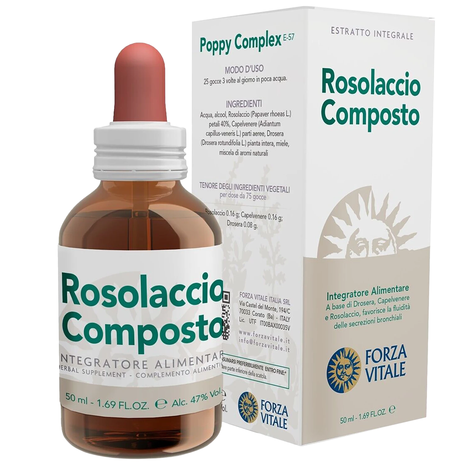 Rosolaccio Composto è un integratore alimentare a base di Rosolaccio, favorisce la funzionalità delle prime vie respiratorie.